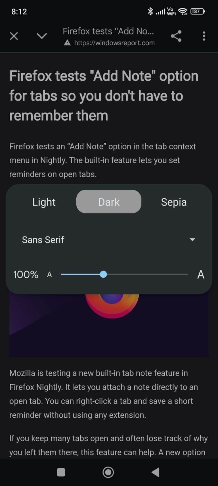 目前用户可选择三种字体样式,分别是 Sans Serif(IT之家注:无衬线)、Serif(衬线)和 Mono(等宽),如果觉得默认字号不合适,还可以使用下方的滑块调整字体大小。